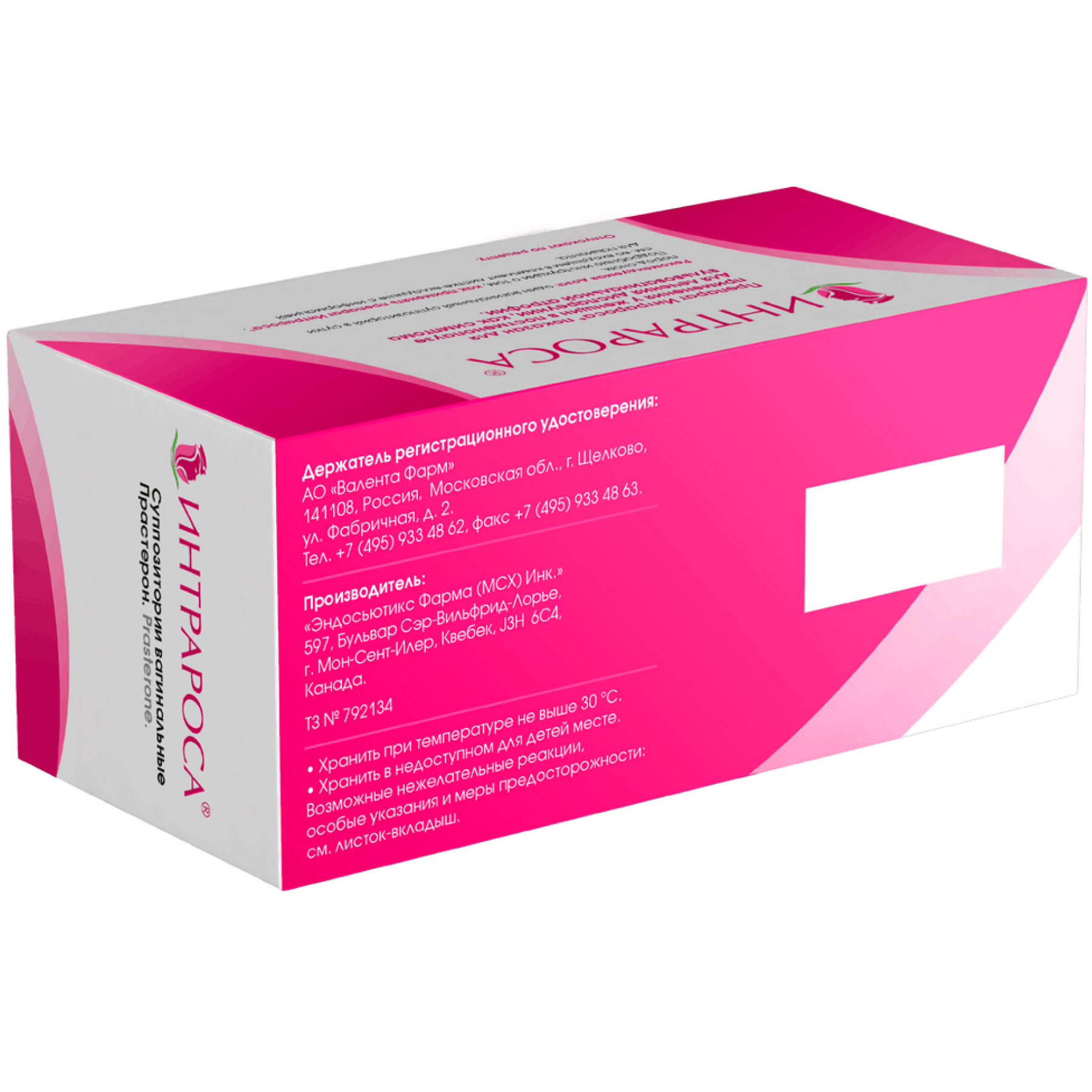 Препарат Интрароса® представляет собой суппозиторий вагинальный. Его помещают во влагалище с помощью входящего в комплект аппликатора или пальцами. Запрещается использовать другие аппликаторы.
