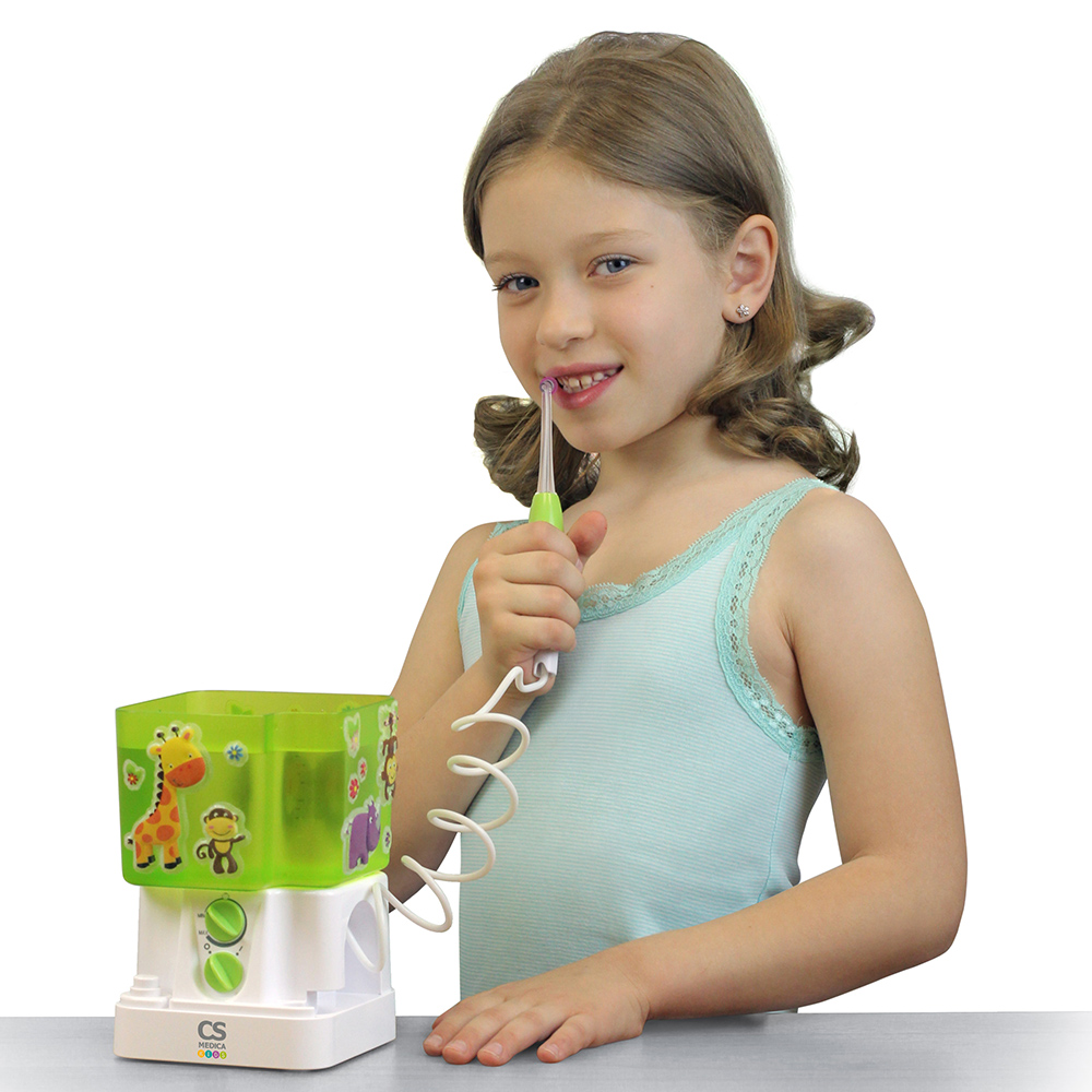 Данная модель специально разрабатывалась для использования и взрослыми, и детьми. При этом в прибор добавлены функционально-технические особенности, которые могут мотивировать ребенка самостоятельно проводить ирригацию и выработать привычку ухода за ротовой полостью.