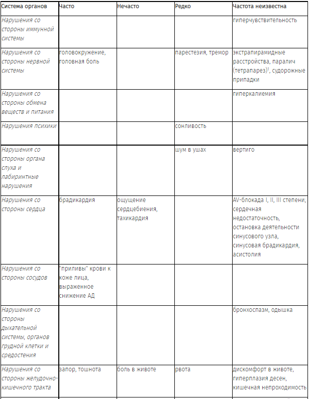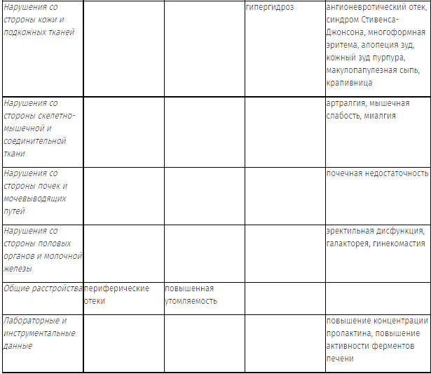 В соответствии с классификацией ВОЗ все реакции распределены по системам органов и частоте встречаемости согласно классификации медицинского словаря для нормативноправовой деятельности (MedDRA): очень часто (≥1/10); часто (от ≥ 1/100 до <1/10); нечасто (от ≥ 1/1000 до <1/100); редко (от ≥ 1/10000 до <1/1000); очень редко (< 1/10000); частота неизвестна (невозможно определить на основании доступных данных).