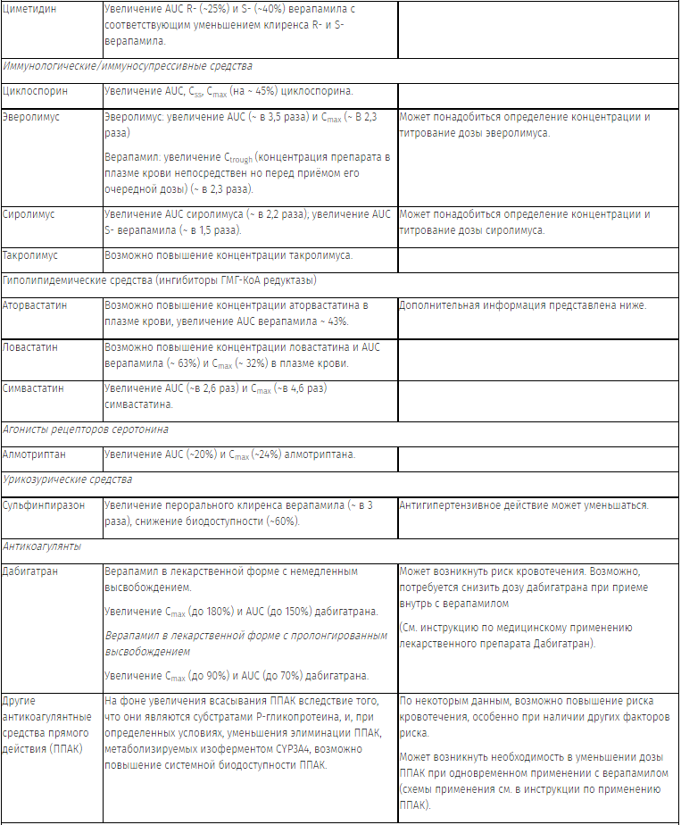Если верапамил необходимо назначить пациенту, который уже принимает ингибитор ГМГ-КоА редуктазы (например, симвастатин, аторвастатин или ловастатин), то может потребоваться изменение режима дозирования гиполипидемического препарата.