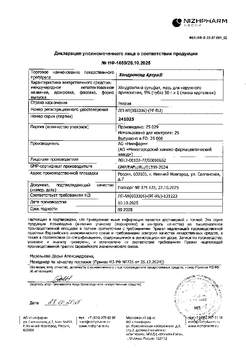 Хондроксид Артра® мазь обладает комбинированным действием: