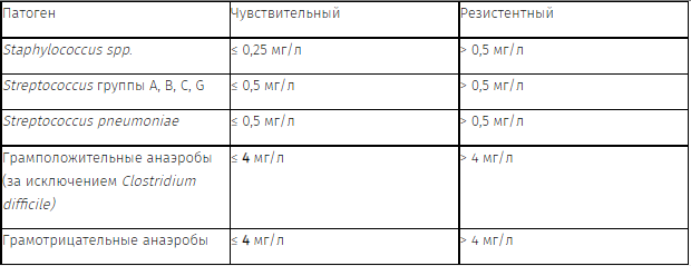 Чувствительность антибиотиков in vitro меняется в зависимости от географического региона и с течением времени, поэтому при выборе антибактериальной терапии необходимо учитывать местную информацию о резистентности.