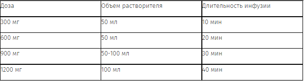 Максимальная разовая доза для внутривенного введения - 1200 мг в течение 1 часа.