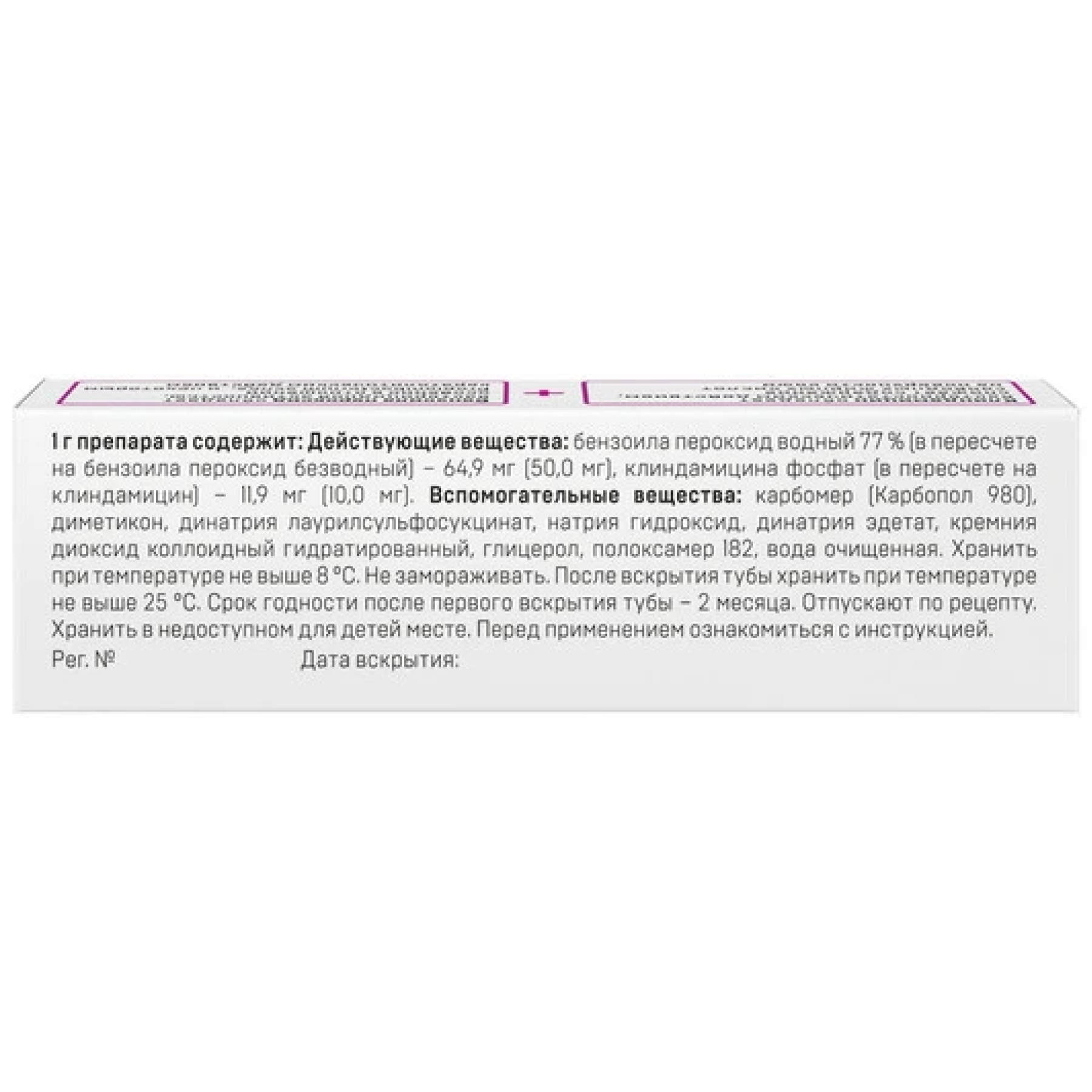 Безопасность и эффективность применения комбинации клиндамицина и бензоила пероксида при лечении акне длительностью более 12 недель не были изучены. Следует тщательно оценить ожидаемую пользу для пациента при назначении лечения длительностью более 12 недель непрерывного использования.