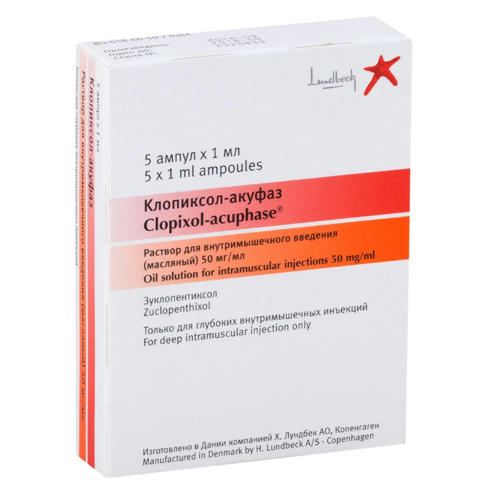 Активное вещество: зуклопентиксола ацетат 50 мг;