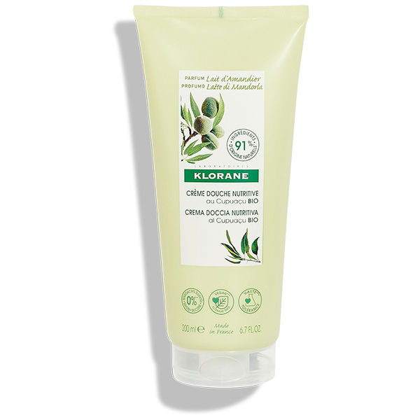 KLORANE КРЕМ ДЛЯ ДУША ПИТАТЕЛЬНЫЙ МОЛОЧКО МИНДАЛЯ С ОРГАНИЧЕСКИМ МАСЛОМ КУПУАСУ - подходит для всех типов кожи.