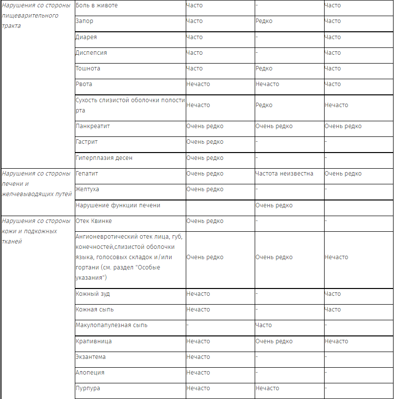 В редких случаях на фоне терапии ингибиторами АПФ развивается ангионевротический отек кишечника. При этом у пациентов отмечаются жалобы на боль в животе как изолированный симптом или в сочетании с тошнотой и рвотой, в некоторых случаях без предшествующего ангионевротического отека лица и при нормальном уровне С1-эстеразы. Диагноз устанавливался с помощью компьютерной томографии, ультразвукового исследования органов брюшной полости или во время хирургического вмешательства. Симптомы исчезают после прекращения приема ингибиторов АПФ. Поэтому у пациентов с жалобами на боль в области живота, принимающих ингибиторы АПФ. при проведении дифференциальной диагностики необходимо учитывать возможность развития ангионевротического отека кишечника.