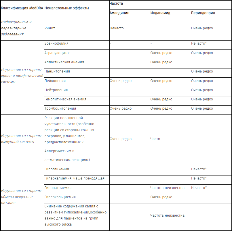 Гиперчувствительность к амлодипину и другим производным дигидропиридина, индапамиду и другим производным сульфонамида, периндоприлу и другим ингибиторам АПФ, а также к вспомогательным веществам, входящим в состав препарата.