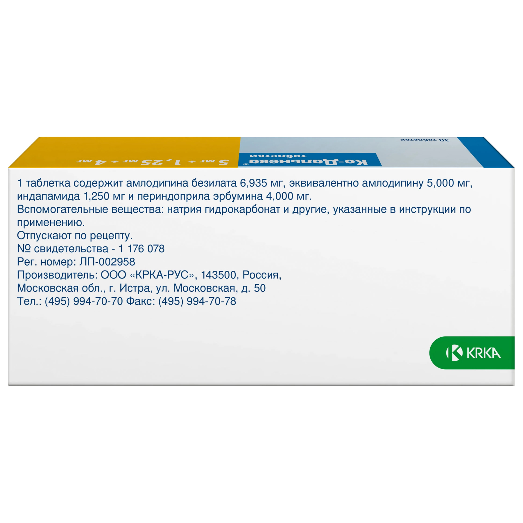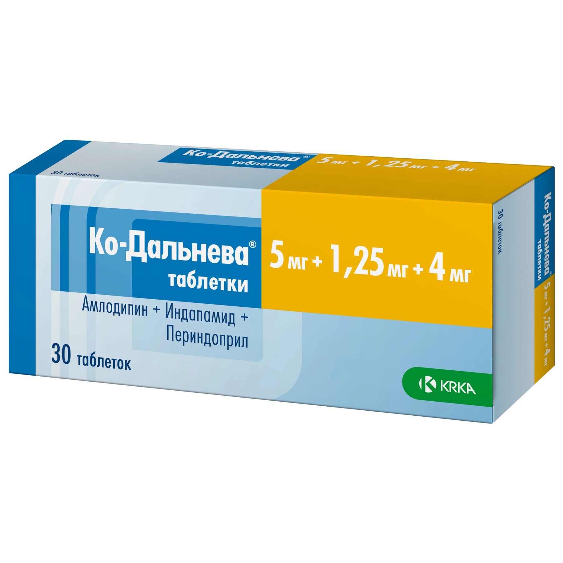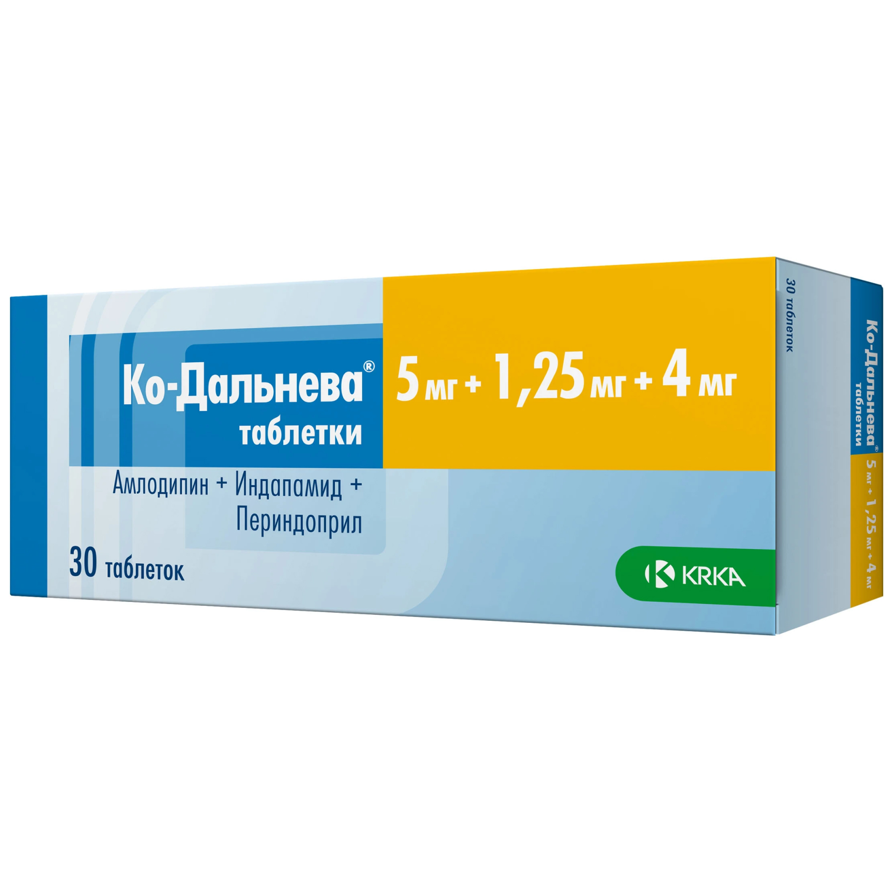 Максимальная суточная доза препарата Ко-Дальнева® составляет 10 мг амлодипина + 2,5 мг индапамида + 8 мг периндоприла.