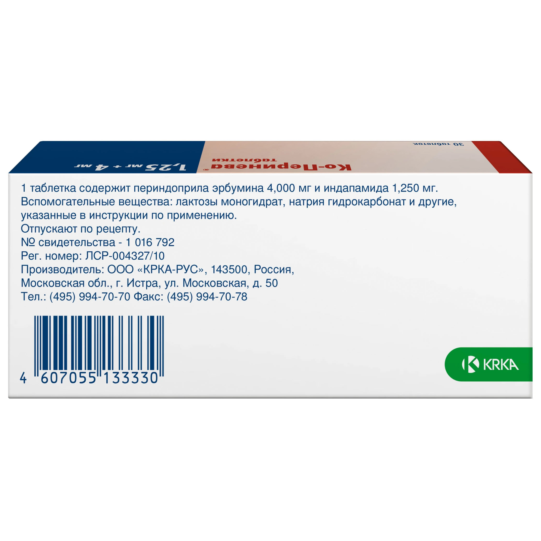 Гипокалиемия развивается у 4 % пациентов на фоне применения комбинации индапамид + периндоприл в дозировке 1,25 мг + 4 мг и у 2 % пациентов на фоне применения комбинации индапамид + периндоприл в дозировке 0,625 мг + 2 мг.