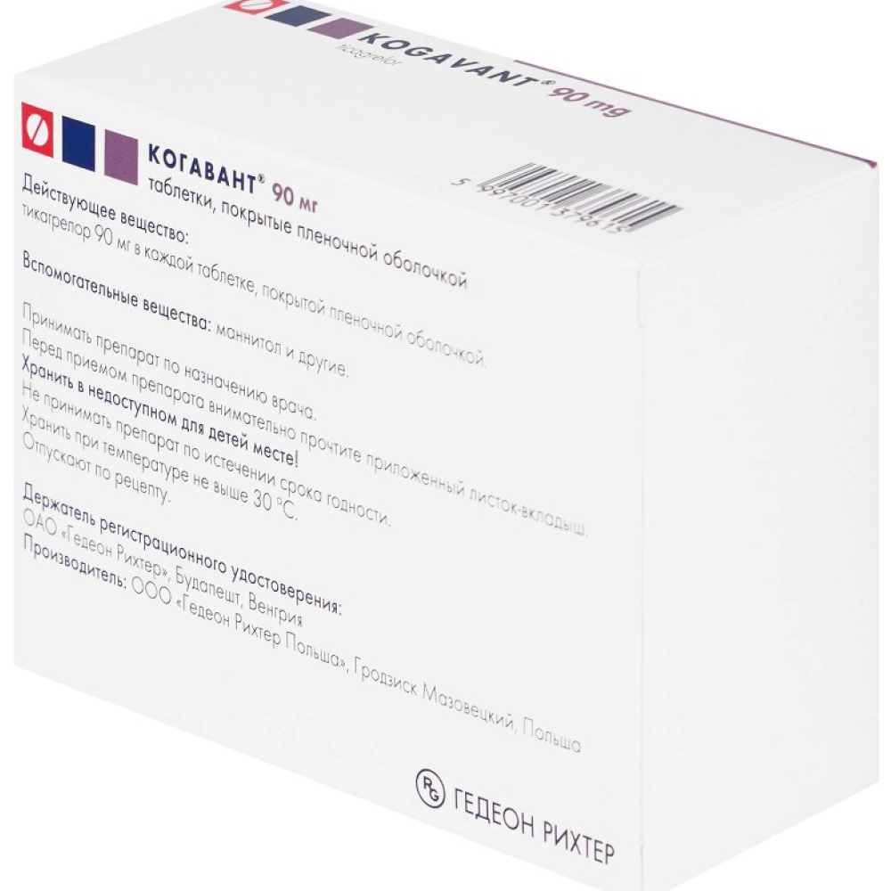 Каждая таблетка, покрытая пленочной оболочкой, содержит 90 мг тикагрелора.