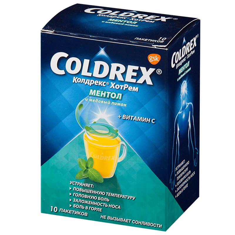 Препарат Колдрекс ХотРем Ментол и медовый лимон применяют у взрослых и детей старше 12 лет в качестве временного средства для устранения симптомов "простуды" и гриппа, включая: