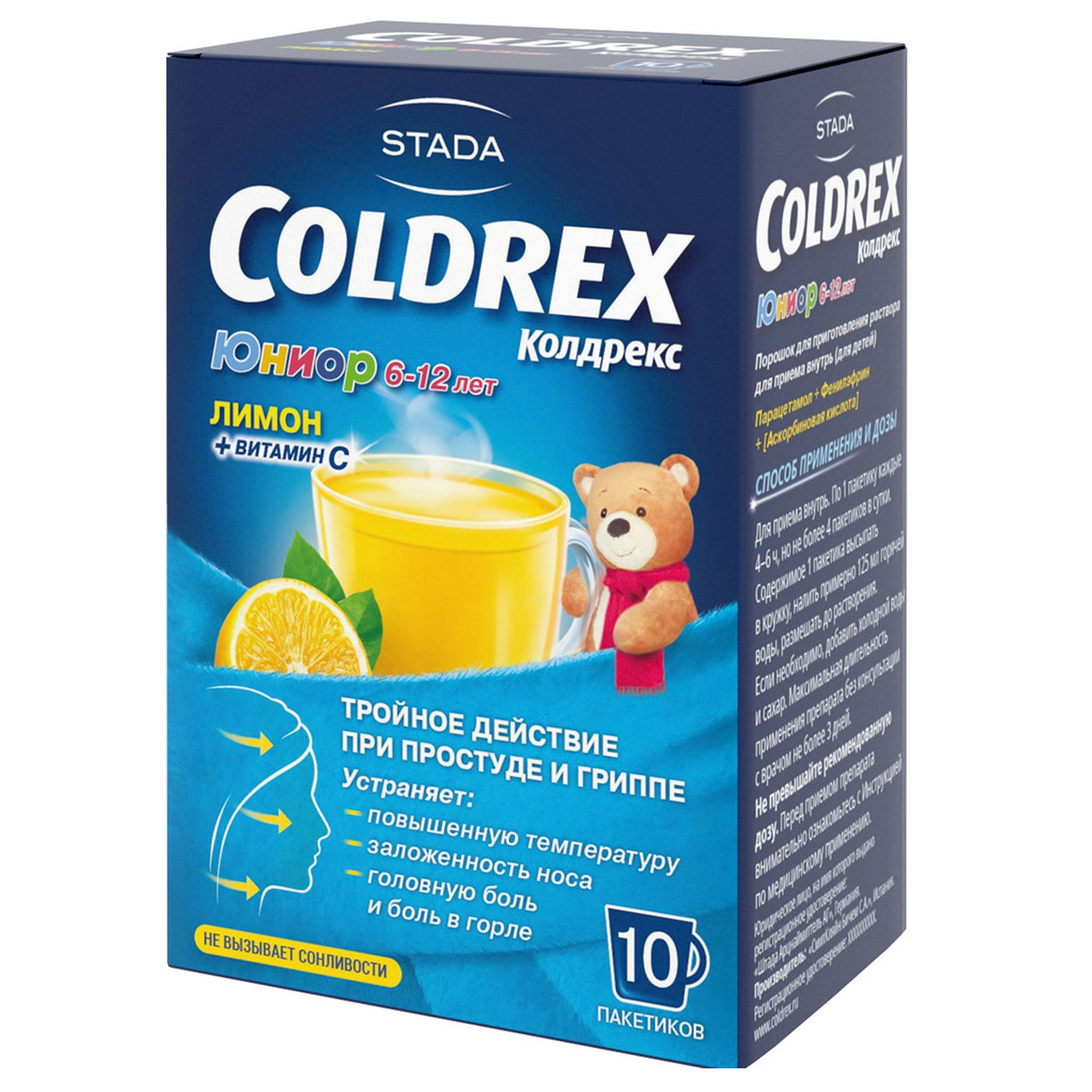 Дети от 6 до 12 лет: по 1 пакетику каждые 4-6 ч, но не более 4 пакетиков в сутки. Максимальная суточная доза не должна превышать 4 пакетиков. Максимальная длительность применения препарата без консультации с врачом не более 3 дней.