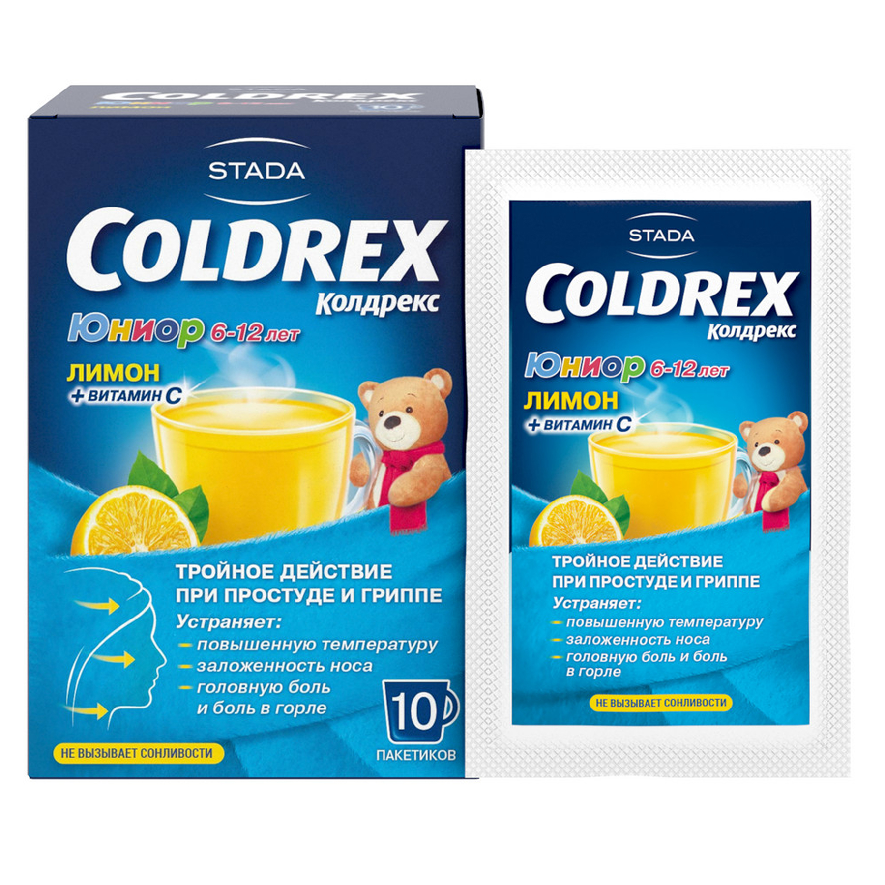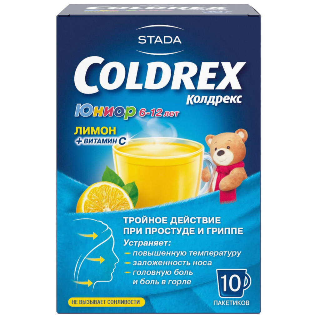 Препарат Колдрекс Юниор применяют у детей от 6 до 12 лет в качестве средства для устранения симптомов "простуды" и гриппа, включая:
