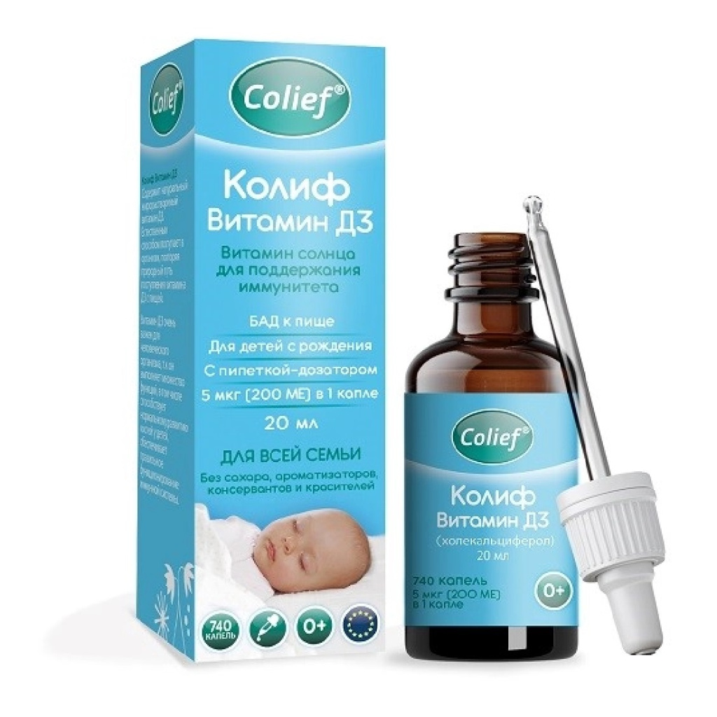 КОЛИФ ВИТАМИН Д3 20МЛ ФЛАК С ПИПЕТКОЙ ЖИДКОСТЬ (Colief Vitamin D3 drops) -