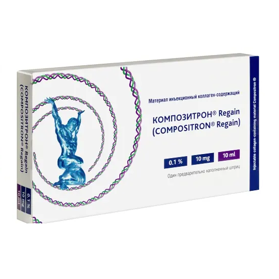 Композитрон® - это медицинское изделие однократного применения, представляющее собой инъекционный материал в предварительно наполненных шприцах в нескольких вариантах исполнения на основе водного раствора гидролизованного коллагена в фосфатном буфере. Не содержит латекса и фталатов. Композитрон® не включает в себя лекарственные средства, фармацевтические субстанции, производные клеток и тканей человека. Не имеет радиационных и электромагнитных свойств.