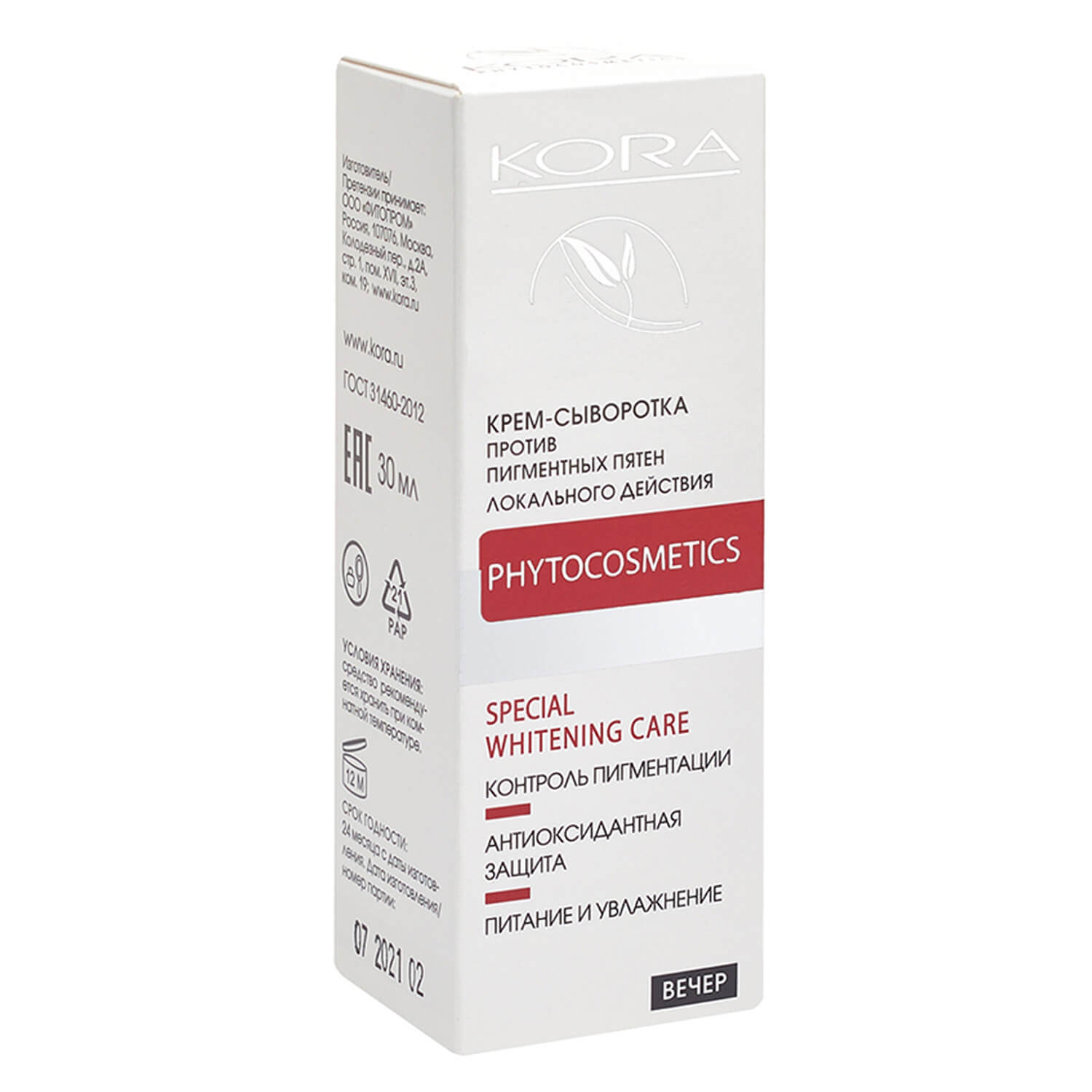 Крем-сыворотка против пигментных пятен оказывает максимальное осветляющее действие, воздействуя на основные механизмы образования пигментных пятен. Ниосомальный коктейль – инновационная система доставки активных ингредиентов (экстракт яблока, цитруса хассаку и маринды лимонолистной) в глубокие слои кожи, оказывает максимальное осветляющее действие. Способствует уменьшению проявления пигментных пятен, в т.ч. возрастных, осветлению и выравниванию тона кожи. Препятствует образованию новой пигментации. Активно питает, восстанавливает липидный барьер, сохраняет водный баланс.