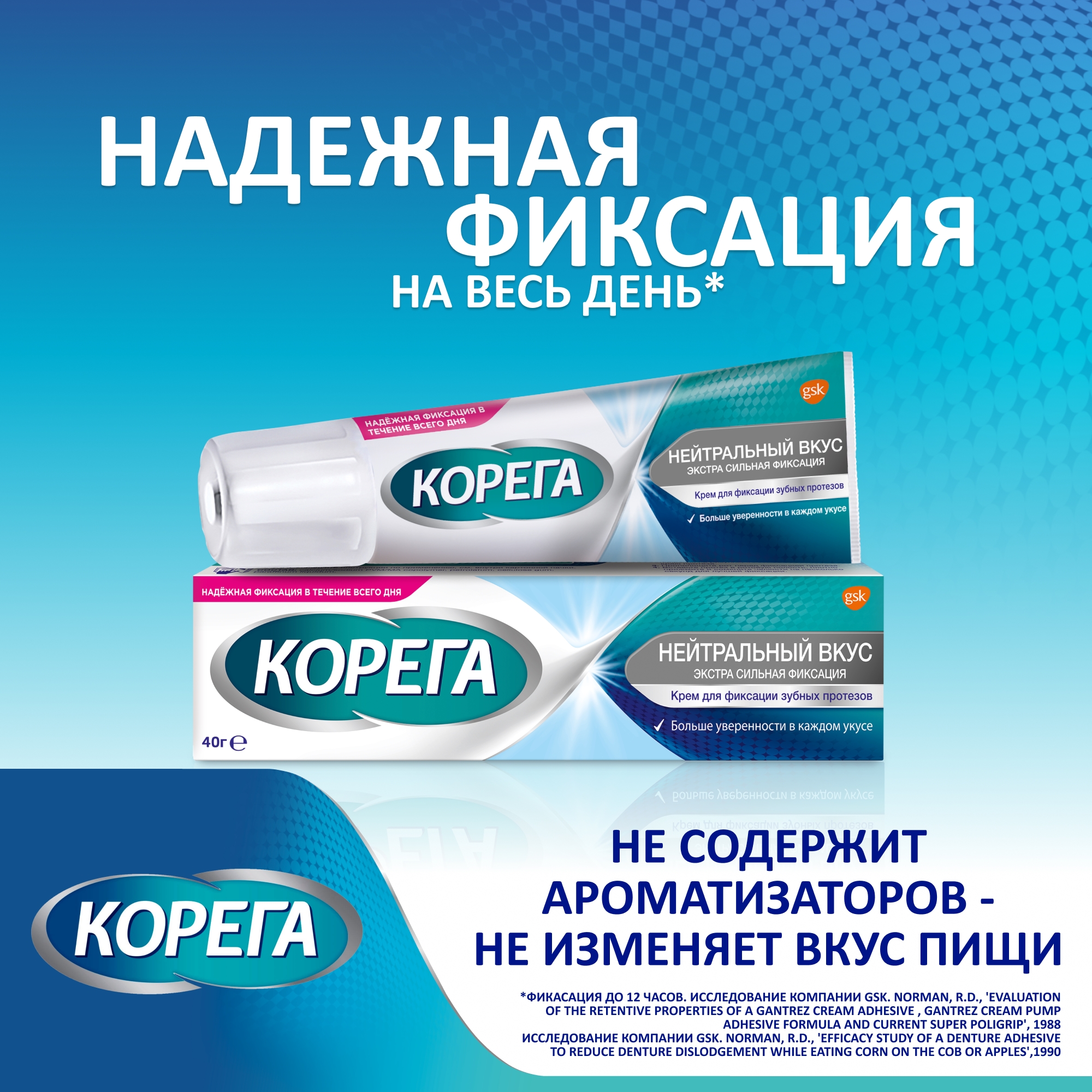 Крем Корега обеспечивает надежную фиксацию в течение всего дня, предотвращает смещение протеза в полости рта и попадание частичек пищи даже под хорошо припасованный протез, позволяя вам говорить, есть и улыбаться уверенно!