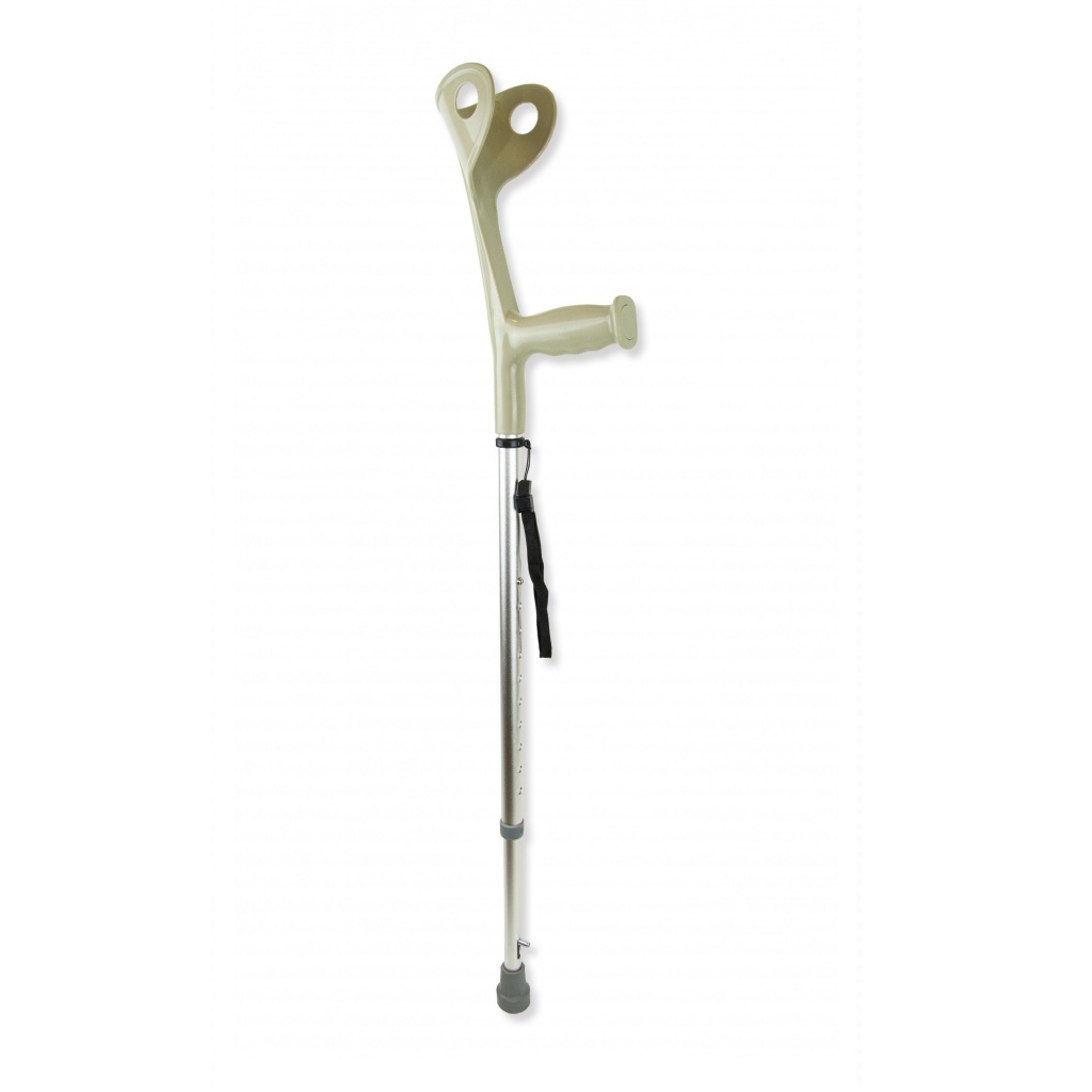 Костыль регулируются по высоте, имеют манжету открытого типа и фиксированную опору под локоть. Открытые пластиковые опоры под локоть удобны людям с большой окружностью предплечья при использовании в любое время года.