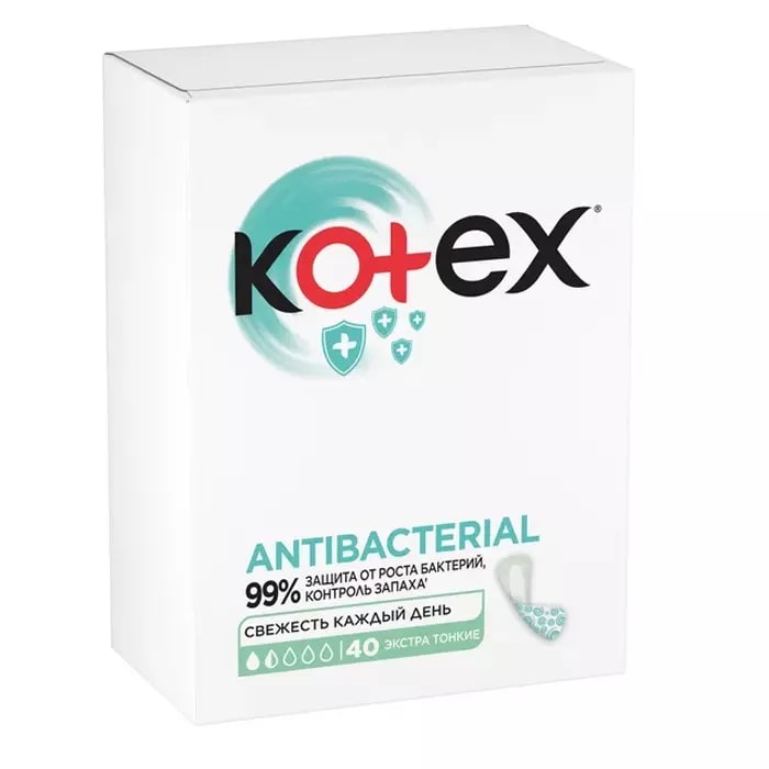 Дышащие ежедневные прокладки Kotex Antibacterial экстра тонкие с антибактериальным слоем внутри обеспечат 99% защиты от бактерий и запаха, подарят ощущение свежести на весь день!