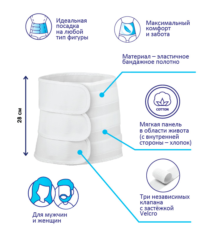 • Умеренная и равномерная поддержка брюшной стенки, в том числе в области послеоперационного шва