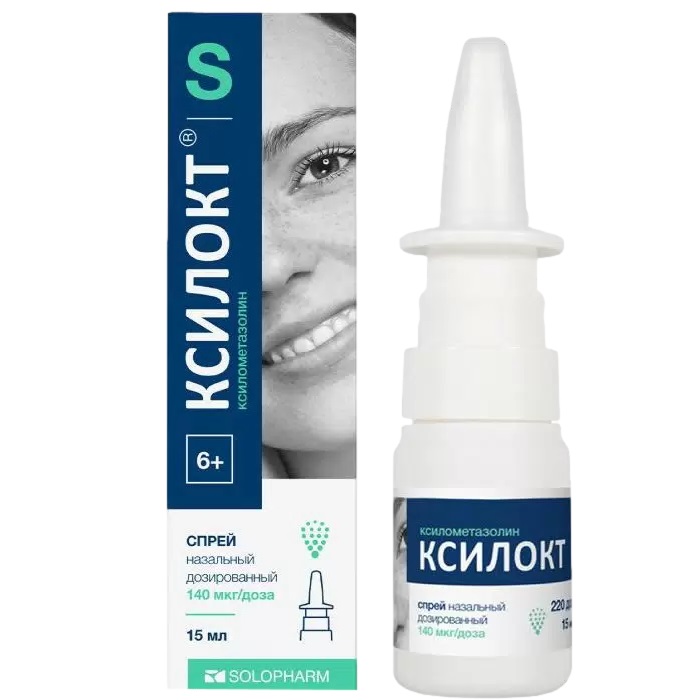 Одно впрыскивание объемом 140 мкл содержит 140 мкг ксилометазолина гидрохлорида - для Ксилокт®-СОЛОфарм, спрей назальный дозированный 140 мкг/доза.