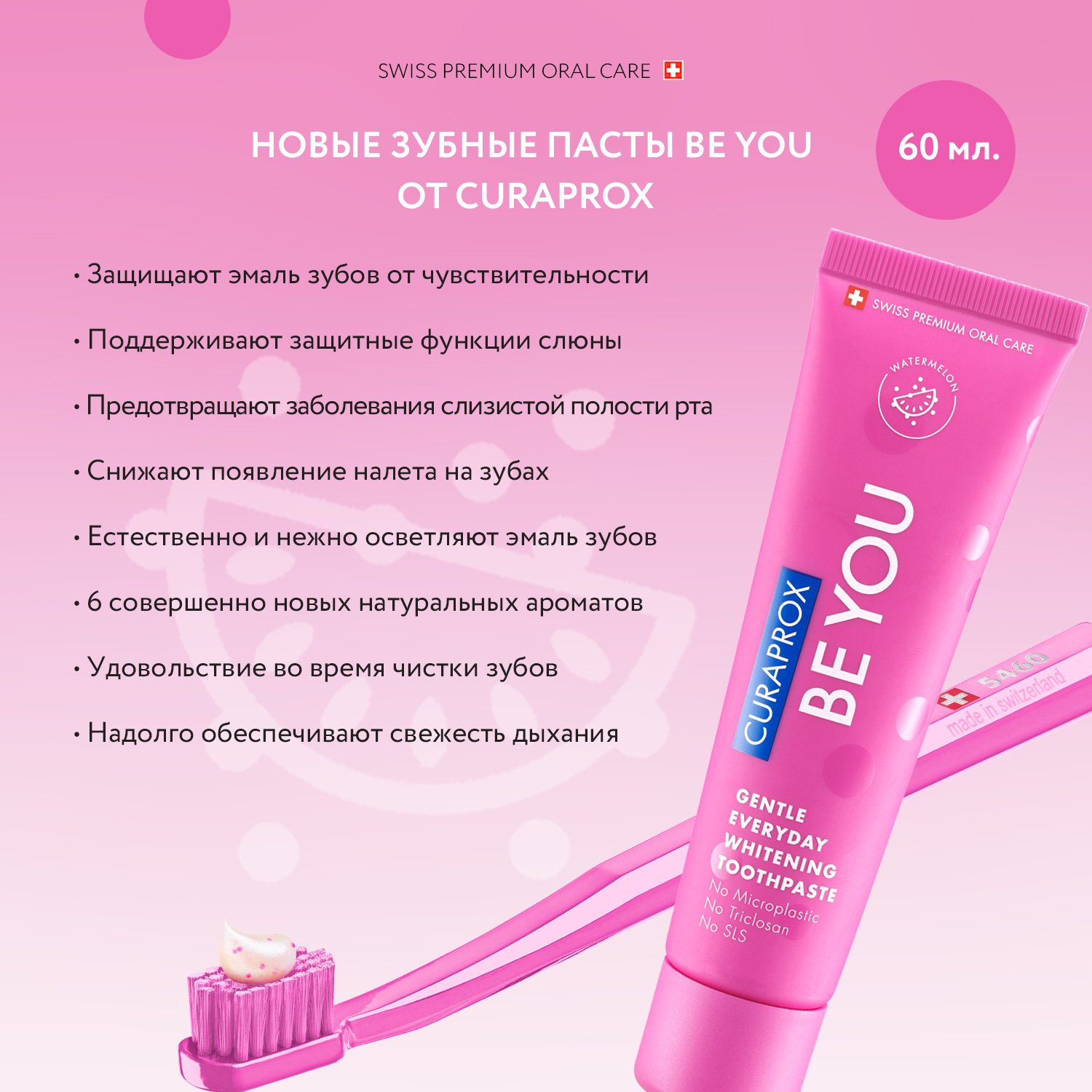 Зубная паста CURAPROX Be You со вкусом арбуза и свежей мяты.