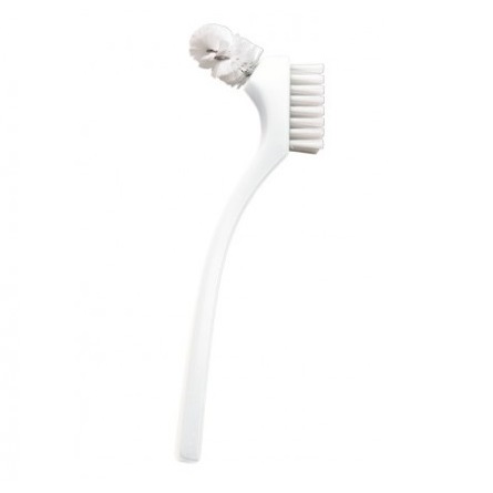 Благодаря двум щеткам на одной рукояти она позволяет очищать как внешнюю сторону протеза, так и его труднодоступные внутренние участки и полости.