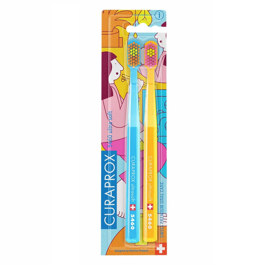 Инструкция по применению Curaprox ultrasoft CS Duo Bathroom 2 шт набор зубных щеток (голубая, желтая)