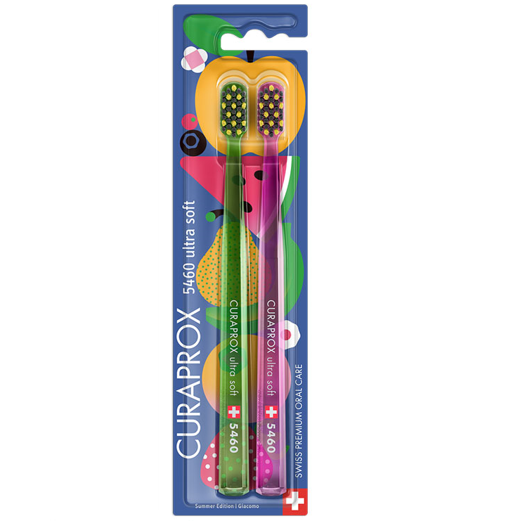 Лимитированный набор зубных щеток Curaprox 5460 Ultra Soft (2шт.) Duo Summer Edition 2025. Бренд Curaprox, известный своим гармоничным сочетанием функциональности и творческого подхода к дизайну, объединился с итальянским художником Джакомо Баньярой для создания по-настоящему летнего и незаменимого набора.
