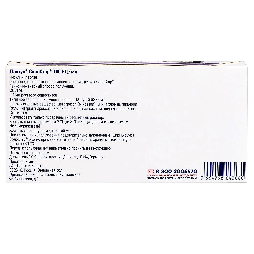Перед применением препарата Лантус® СолоСтар® проконсультируйтесь с лечащим врачом.