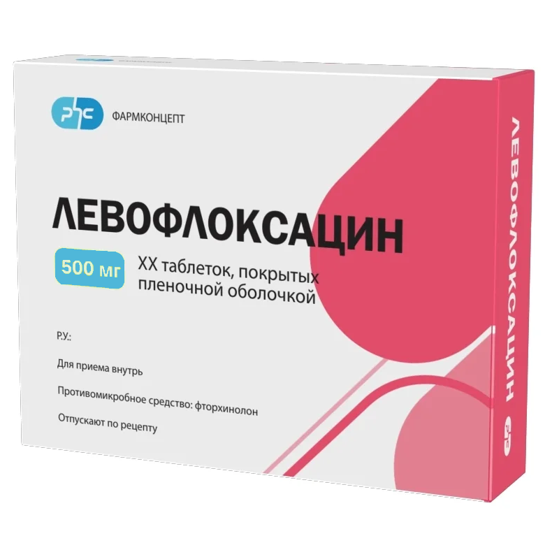 Действующее вещество: левофлоксацина гемигидрат 256,23 мг/ 512,46 мг / 768,69 мг в пересчете на левофлоксацин 250,0 мг/ 500,0 мг/ 750,0 мг.