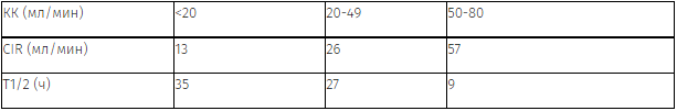 Фармакокинетика у пациентов пожилого возраста не отличается от таковой у молодых пациентов, за исключением различий фармакокинетики, связанных с различиями в клиренсе креатинина (КК).