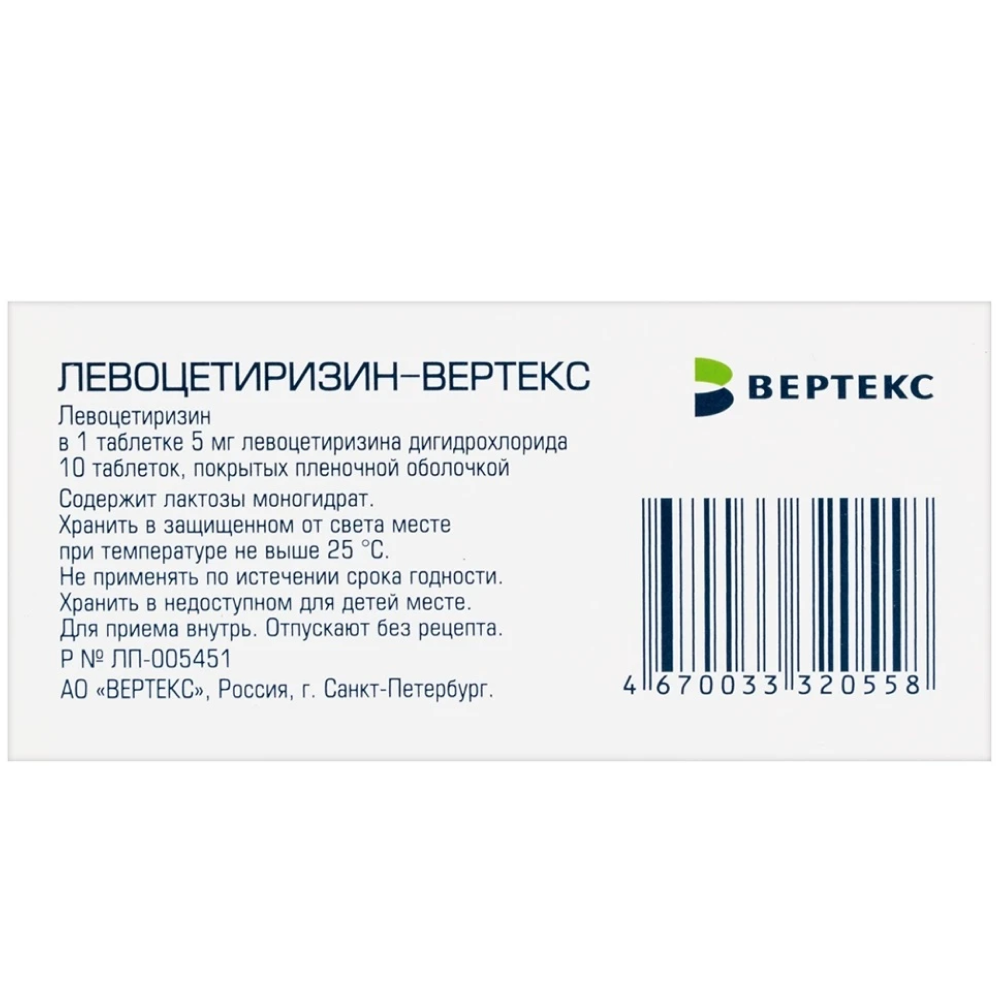 Препарат Левоцетиризин - ВЕРТЕКС содержит
