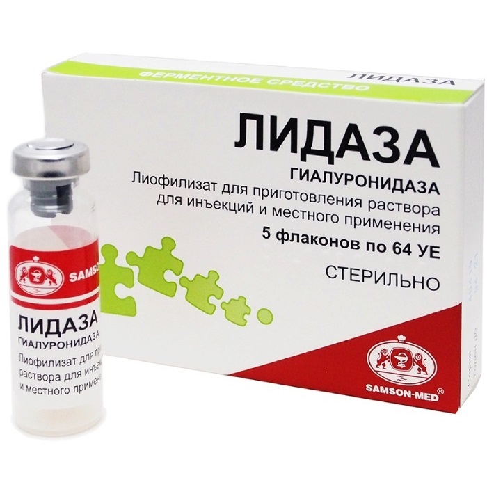 Действующее вещество: гиалуронидаза 64 УЕ.