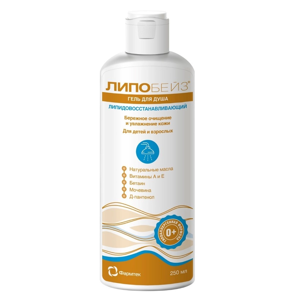 ЛИПОБЕЙЗ ГЕЛЬ ДЛЯ ДУША ЛИПИДОВОССТАНАВЛИВАЮЩИЙ - бережно и мягко очищает кожу, смягчает, уменьшает сухость после душа и защищает кожу от воздействия жёсткой воды. Восполняет утраченные липиды, восстанавливает защитный барьер кожи, поддерживает физиологический рН.
