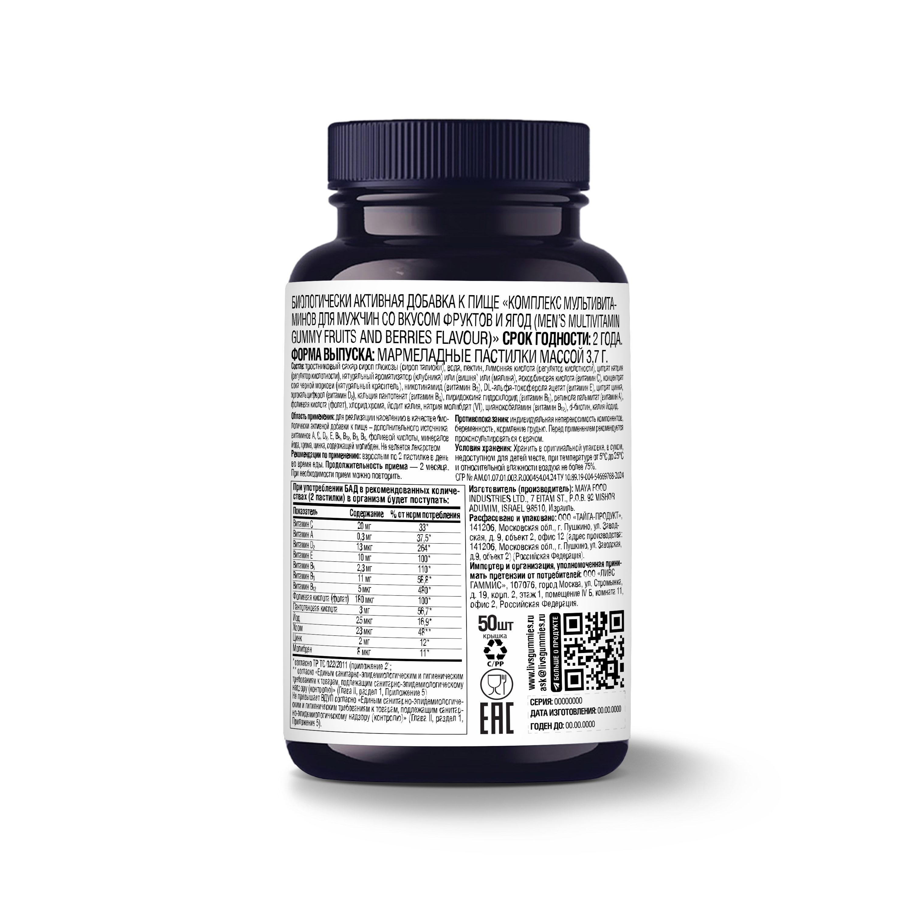 Сбалансированный комплекс LIVS™ Men’s Multivitamin помогает восполнить дефицит жизненно важных витаминов и минералов, необходимых для здоровья и активной жизни мужчин. Проходит строжайший контроль качества и соответствует международным стандартам: FDA, GMP, ISO, HACCP.