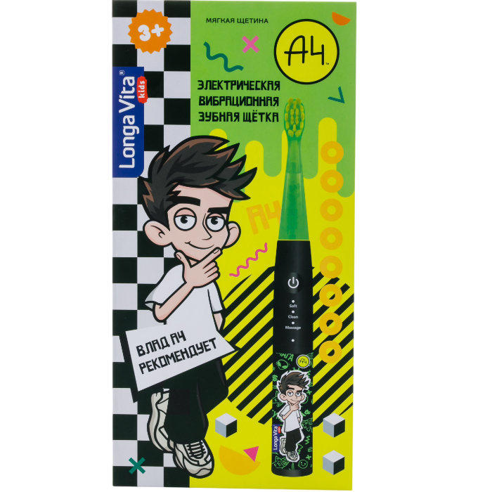 • Купить Longa Vita 1 шт щетка зубная детская вибрационная Влад А4 3 насадки от 3-х лет артикул FR-01