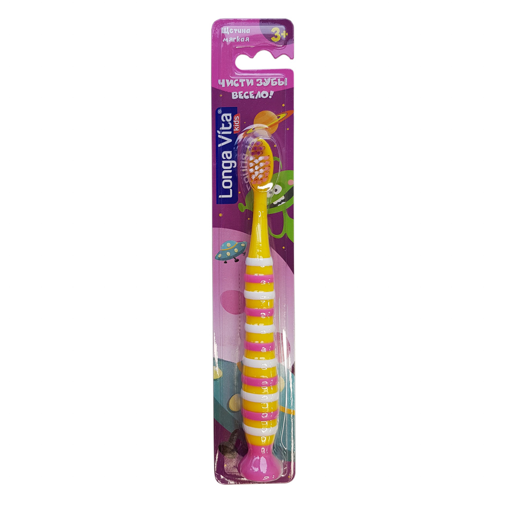 Щетка этой серии выполнена в ярком, позитивном дизайне. Кроме этого, у щетки очень мягкая щетина, качественно прочищающая самые труднодоступные места между зубов, щетина не способна повредить даже самые чувствительные десны малыша. Небольшая по размеру головка щетки как раз подойдет для самых маленьких детей, а удобная ручка крепко и прочно будет держаться в руке.