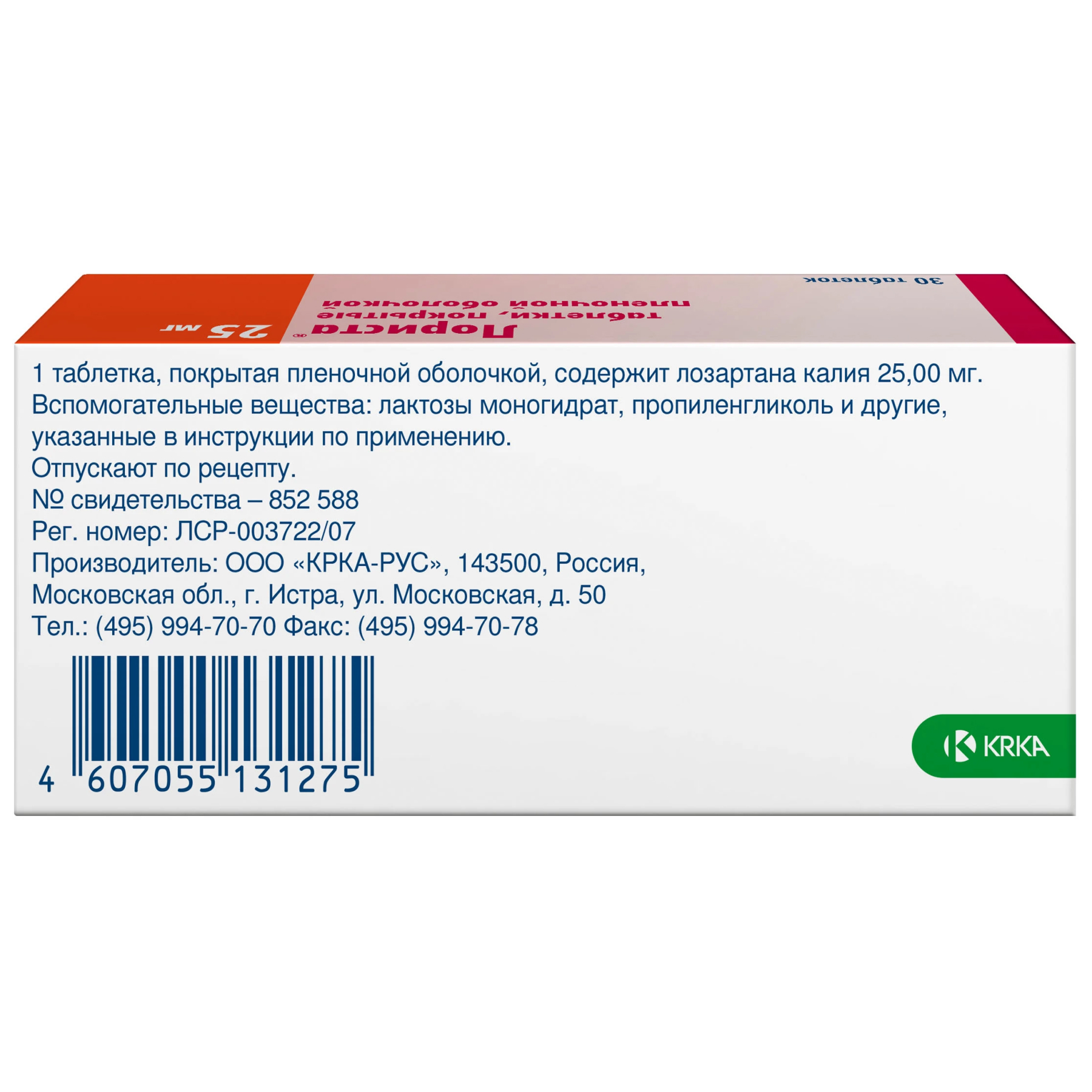 У пациентов со сниженным ОЦК (например, при приеме больших доз диуретиков) начальную дозу препарата Лориста® следует снизить до 25 мг 1 раз в сутки.