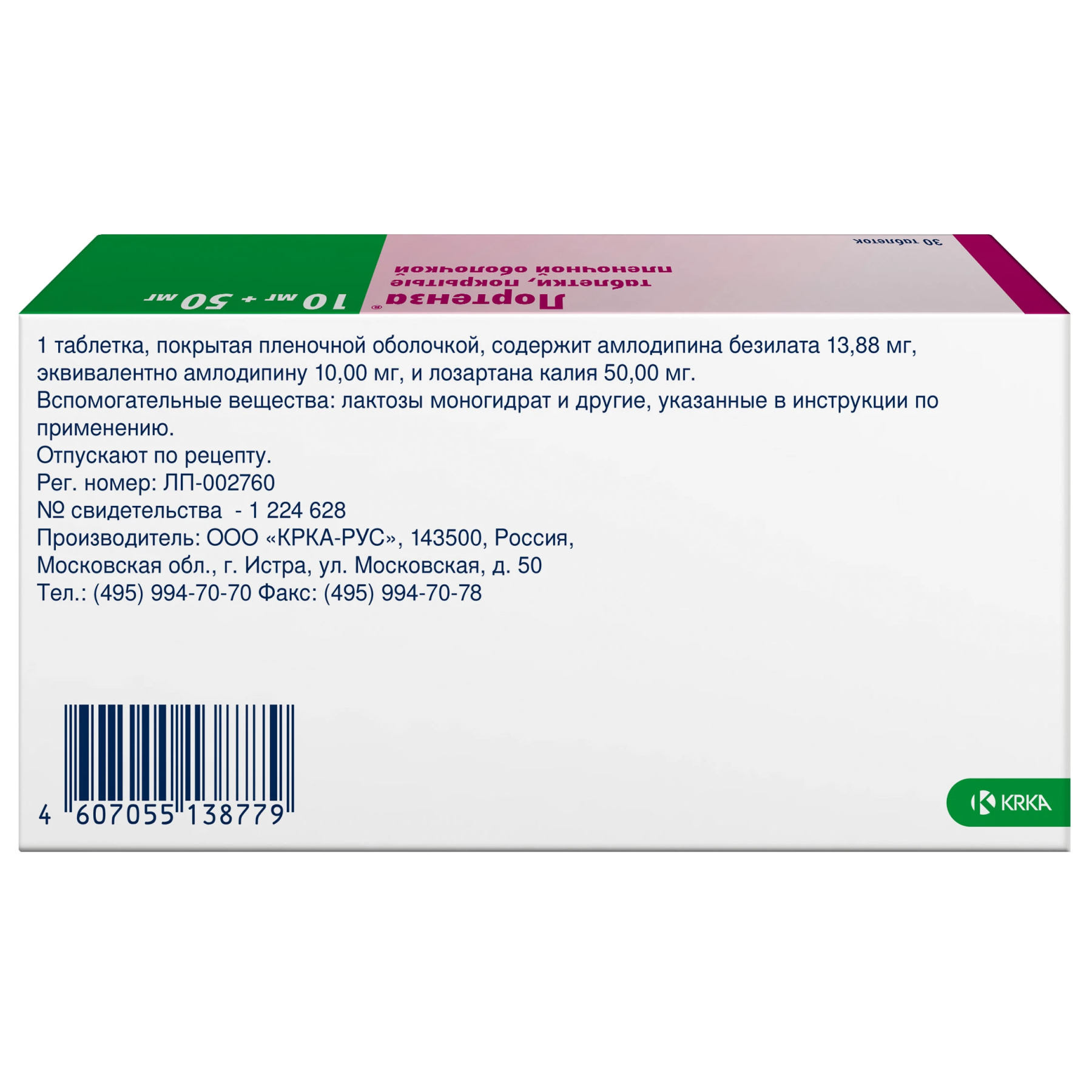 Действующие вещества: Амлодипина безилат (амлодипина бесилат) 13,88 мг, эквивалентно амлодипину 10,00 мг, Лозартан А субстанция - гранулы 163,55 мг, содержит лозартана калия 50,00 мг