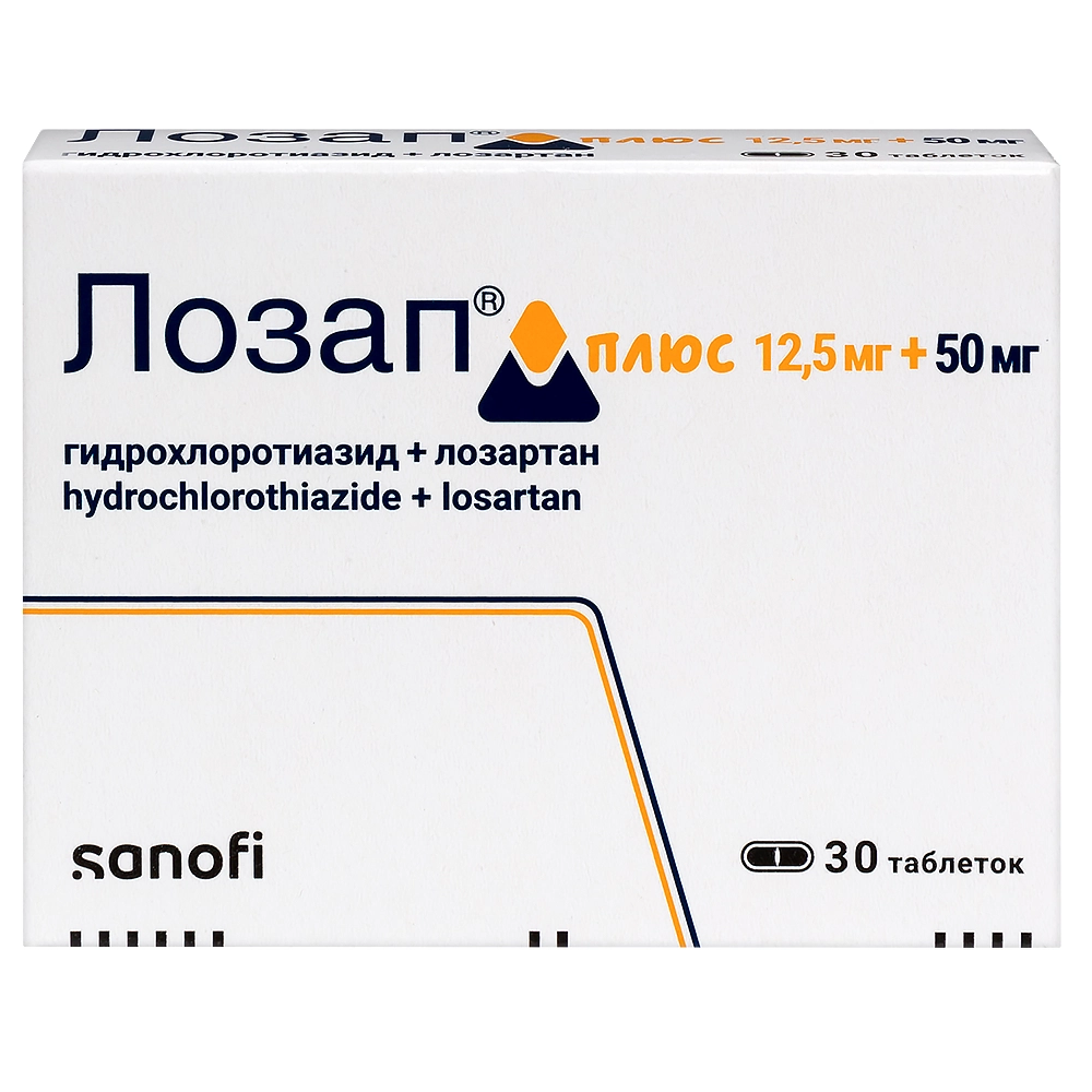 Действующими веществами являются гидрохлоротиазид и лозартан.