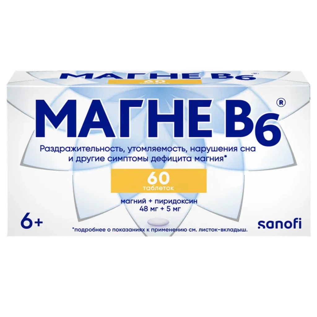 Пиридоксин (витамин В6) участвует во многих метаболических процессах, в регуляции метаболизма нервной системы. Витамин В6 улучшает всасывание магния из ЖКТ и его проникновение в клетки.