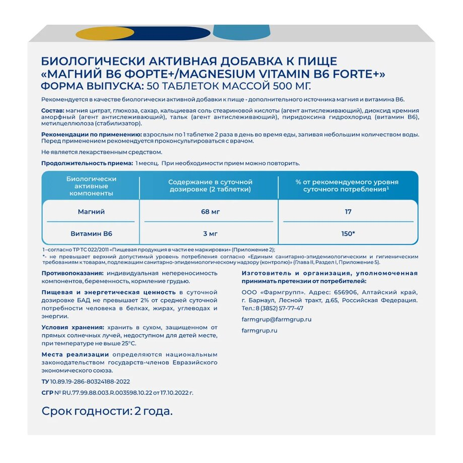 Содержание в суточной дозе (2 таблетки) |