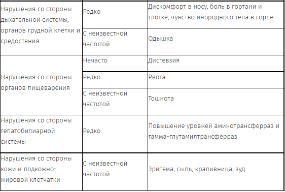 Нижеследующие нежелательные реакции классифицированы в соответствии со следующей градацией частоты встречаемости: "очень часто" (более 1/10); "часто" (более 1/100, менее 1/10); "нечасто" (более 1/1000, менее 1/100), "редко" (более 1/10000, менее 1/1000) и "очень редко" (менее 1/10000).