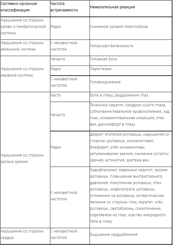 Только для местного офтальмологического применения. Не предназначен для применения в виде субконъюнктивальных инъекций или для введения в переднюю камеру глаза.
