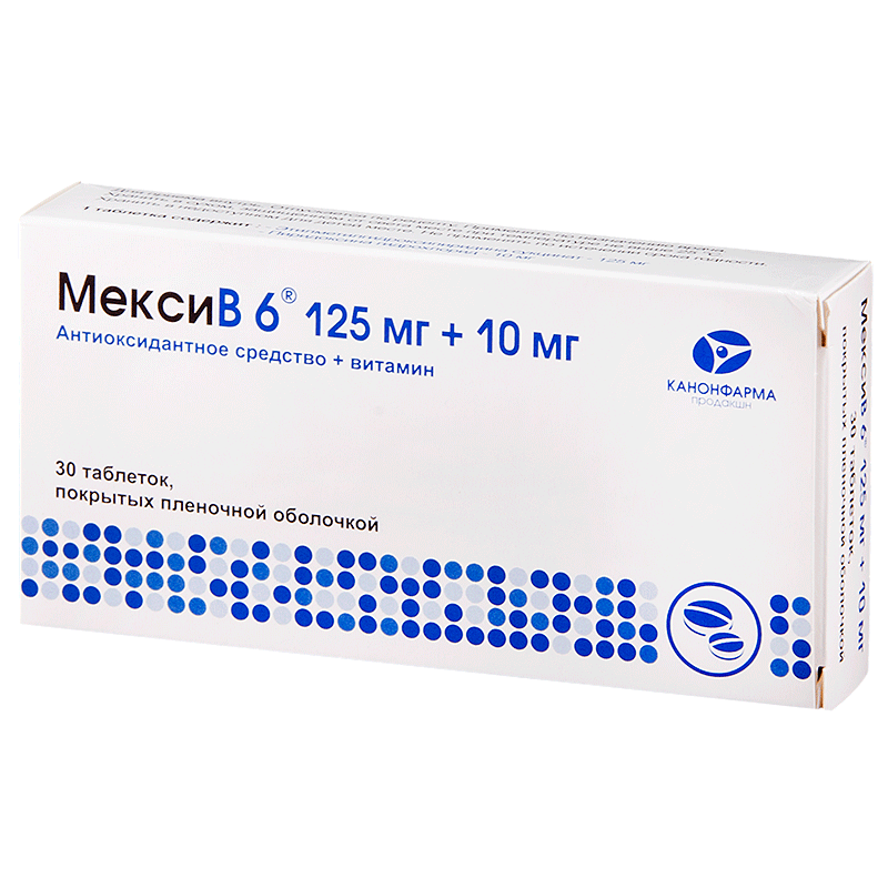 Действующие вещества: этилметилгидроксипиридина сукцинат - 125 мг, пиридоксина гидрохлорид - 10 мг.
