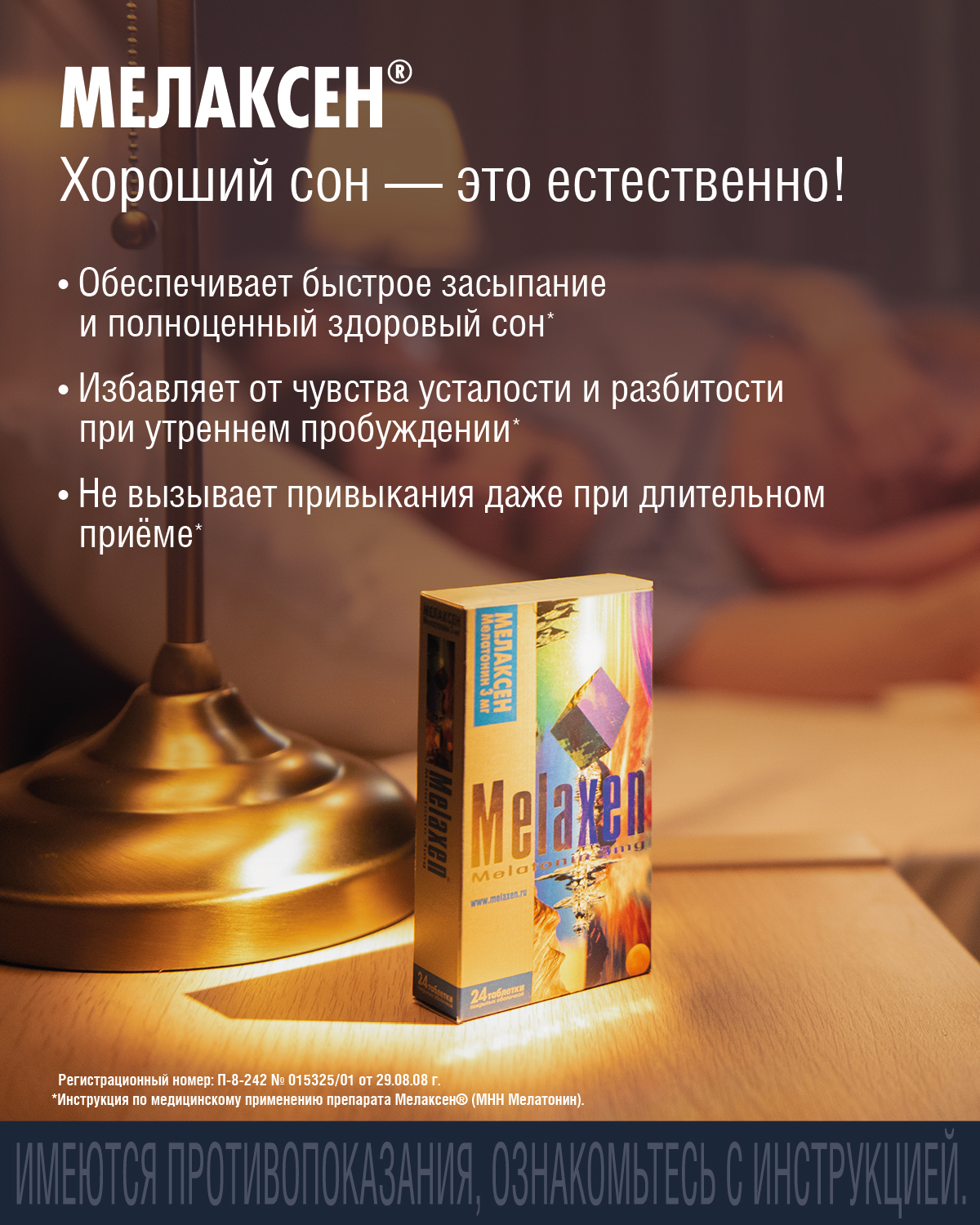 Является синтетическим аналогом гормона шишковидной железы (эпифиза). Нормализует циркадные ритмы. Регулирует цикл сон-бодрствование, суточные изменения локомоторной активности и температуры тела. Способствует нормализации ночного сна (ускоряет засыпание, улучшает качество сна, снижает число ночных пробуждений, улучшает самочувствие после утреннего пробуждения, не вызывает ощущения вялости, разбитости и усталости при пробуждении, сновидения становятся более яркими и эмоционально насыщенными).