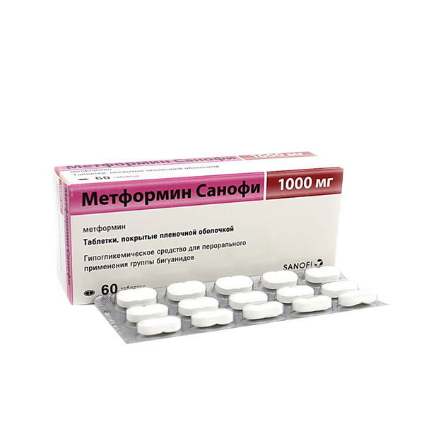Действующее вещество: метформина гидрохлорид - 1000 мг;