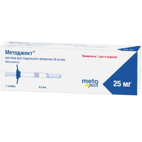 Методжект назначают подкожно. Интегрированная в шприц игла предназначена только для подкожного введения Методжекта! Методжект не следует смешивать с другими лекарственными препаратами. Препарат должен назначаться врачом, имеющим опыт применения метотрексата и знакомым со свойствами метотрексата и особенностями его действия. Препарат предназначен только для однократного применения. Методжект применяют один раз в неделю. Пациент должен быть ясно проинформирован об однократном еженедельном режиме введения. Рекомендуется назначить для введения конкретный день недели. У пациентов с дополнительным объемом распределения (наличие асцита, плеврального выпота) скорость выведения метотретсата из организма снижена. У таких пациентов необходимо особенно тщательно проводить контроль токсичности, снизить дозу препарата, а в некоторых случаях, при необходимости, прервать лечение.